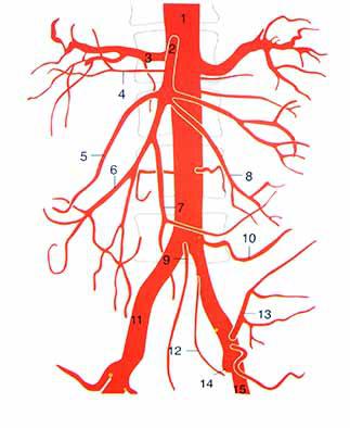 The aorta has collaterals such as : the digestive arteries, renal arteries…