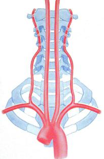 Arteriosclerosis is responsible for the large majority of lesions of the carotid. Atheromatous plaque (atheroma) is made of an accumulation of lipids (fats), sugars, as well as fibrous tissues and calciferous deposits in the artery wall. Complications occur when pieces of the plaque break off inside the artery which can cause a cerebral embolism or an obstruction of the artery. These atheromas will especially build up around bifurcations due to turbulences in the blood flow. The apparition of arteriosclerosis can be favored by cardio-vascular risk factors such as : tobacco, hypertension, cholesterol and diabetes.