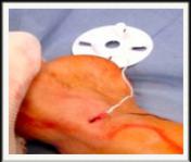 - surgery : stripping of saphenous vein trunk : a small incision (3-4 cm, about a inch and a half) is performed on the fold of the groin (inguinal area) to tie the arch of the great saphenous vein. A flexible special wire called a guide is then introduced through a micro-incision near the ankle, in the vein along its entire length, and will allow its entire extraction.